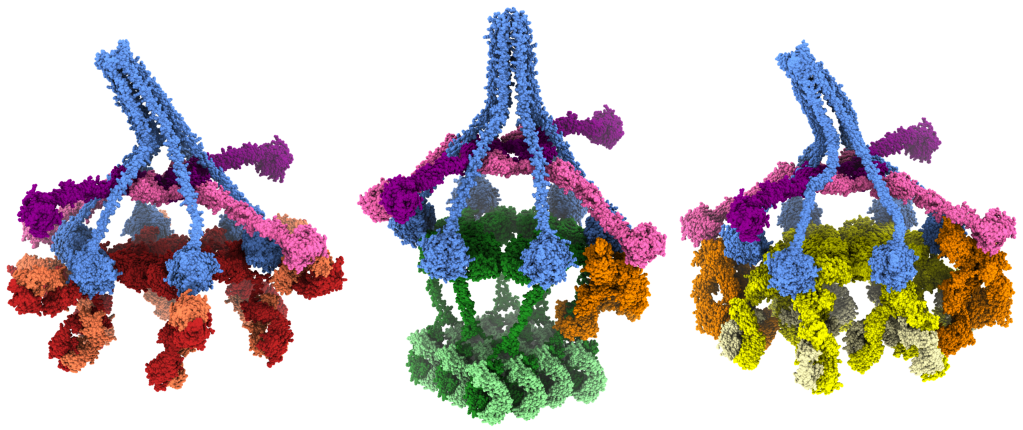 To investigate surface-associated complexes, we use cryoET, which provides contextual information and allows subtomogram averaging. CryoET is typically much lower resolution that cryoEM but the added contextual information can yield surprising unique insights into immune system activation by pentraxins [45], IgG1 [17], IgG3 [33] or IgM [21] antibodies, or other biomolecules.
